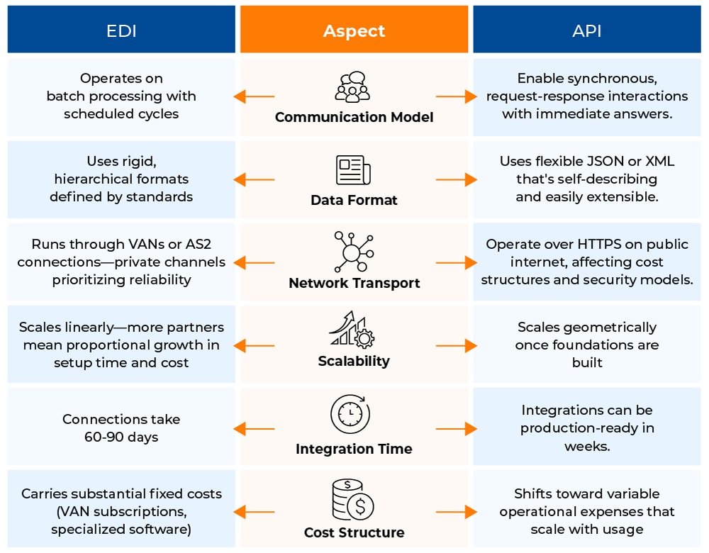 EDI isn’t disappearing. It’s too embedded in global commerce and too reliable for high-volume, compliance-heavy transactions. But APIs represent the future—real-time visibility, rapid onboarding, and AI-driven automation.
