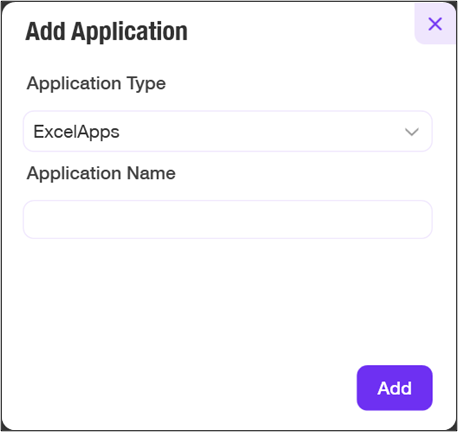 In the Application Name field, enter a desired name of the excel application you want to add. The name must not contain any special character or space.