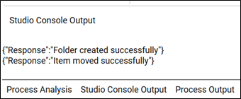 To view the Move Item result in Automation Studio, you can add WriteLine activity. It prints the result in the Studio Console Output tab after you test run the process.