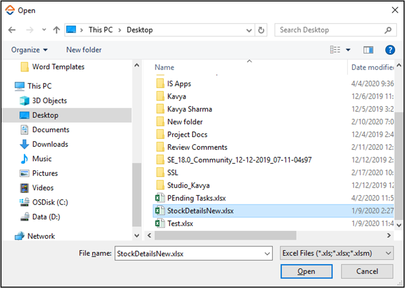 2. Click ADD and browse for the excel file you wan to configure. Click Open.