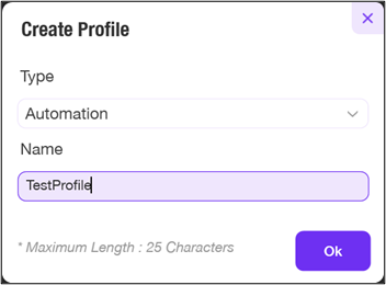 - In the Type list, select the type of profile you want to create. Available options are Automation and Load Generator.