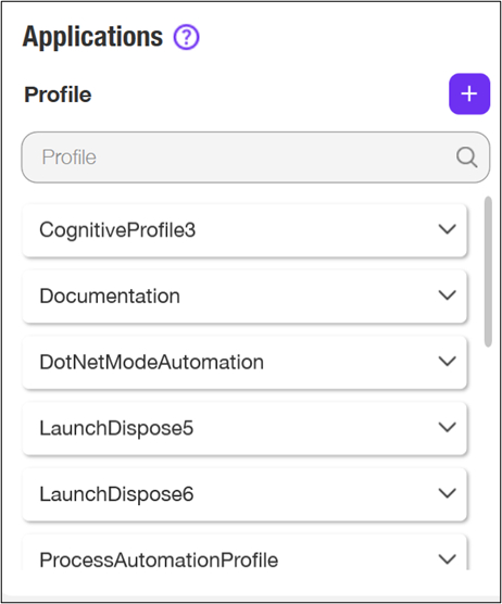 You must add a profile which is assigned to a process in Automation Studio to publish the process. When a process is published, the application used to in the process, starts appearing in the Profile section. For more information on how to publish a process, see Publish Process.