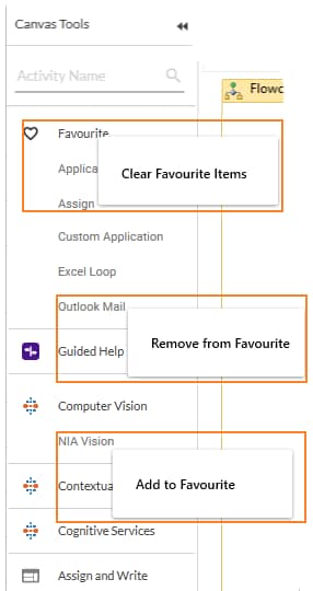 You can mark the frequently used activities in Canvas Tools as favorite. This enhances the ease of access to the activities marked.