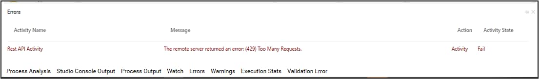 The console where you can view details of the error that might occur during testing. It provides quick issue identification during process configuration and execution.