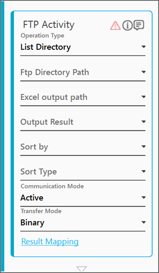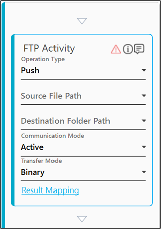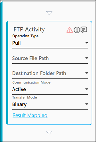 The properties of a FTP Activity are listed in the following table and can be edited in the Properties grid on the right panel.