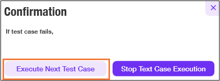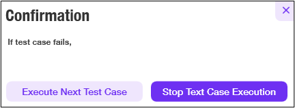 - If multiple test cases are selected, then a prompt appears if the test case execution should continue in case the test case fails.