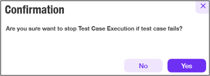 If you select Stop Test Case Execution, a prompt to confirm the selection appears. If you click No, then all the test cases executes even if they fail.
