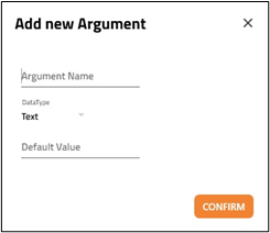 - In the FieldName field, select an existing parameter from the available list. Alternatively, click Add to create a new parameter to configure the field of the process workflow as a process input. The Add new Argument dialog box appears.