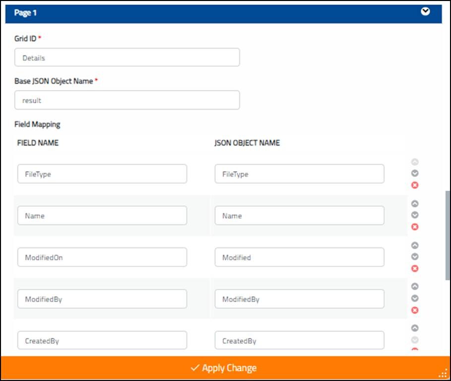 - Enter the details for the Grid ID <Details> and Base JSON Object Name <result> fields.