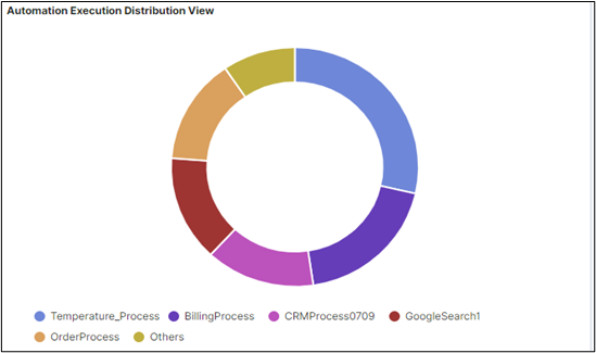 - The distribution chart is based on the automations executed for the top 5 processes. However, the remaining processes are clubbed into a group called Others.