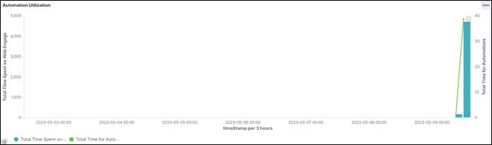 - The line chart represents the total time spent for the automation (total summation of the time taken to run an automation).