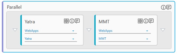 ParallelThis activity can process more than one workflow in parallel. You can perform one child activity with any number of workflows in a single process. For example, you want to check the cheapest flights for your travel. For running this process manually, you will login to 3 different applications and provide the travel details at three different places and then compare the results. In Parallel activity, you can provide the travel details once and parallel activity runs this information on three different portals (for example, Yatra, MakeMyTrip and Cleartrip) for you and provide the cheapest flight details as per the defined process. Using Parallel Activity1. In the Canvas Tools pane, click Flow Controls to expand the tool and view the associated activities. 2. Drag the Parallel activity and drop on to the Flowchart designer on the Canvas.