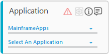 the The Mainframe application is configured. Using Mainframe Application Activity1. In the Canvas Tools pane, click Process Components to expand the tool and view the associated activities. 2. Drag the Application activity and drop on to the Flowchart designer on the Canvas area. The validation error symbol disappears when required inputs are provided in the correct format.