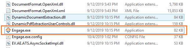 Engage executable file is provided with the product package and is located at ..\AutomationRuntime\Engage\Engage.exe.