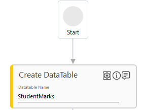 Let us consider creating a data table which comprises of student’s marks and sort the data table by student name and export it to excel. The activities used in this example are Create DataTable, Add Row, Sort DataTable and Export DataTable.