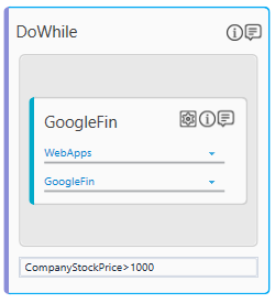 - In the Enter Expression here field, enter the do while condition you want to execute. For example, CompanyStockPrice>1000, that implies to run the loop until the stock price of the company is greater than 1000.
