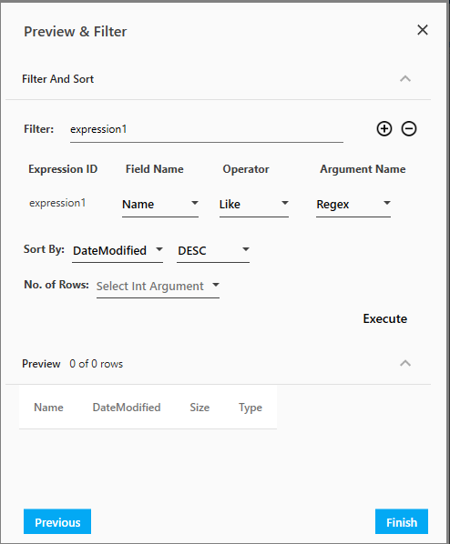 - Click Execute to apply the filter and sort criteria. A preview of the filtered list can be seen under the Preview pane.