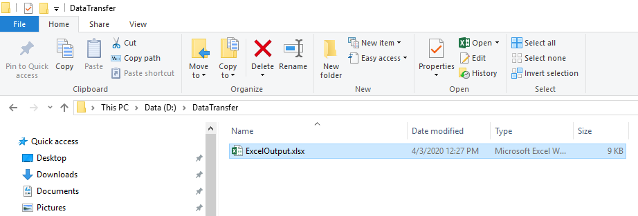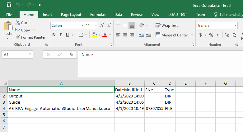 - In the ExcelOutput argument, set the location of an empty excel file where you want the save the list of directory files.