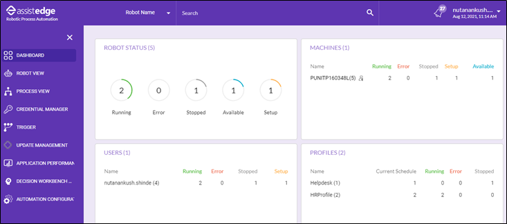 By default, dashboard page of Control Tower is displayed. From the left side Navigation panel, all the available tabs can be accessed. You can configure the dashboard panels as per requirement. For more information about configuration, see