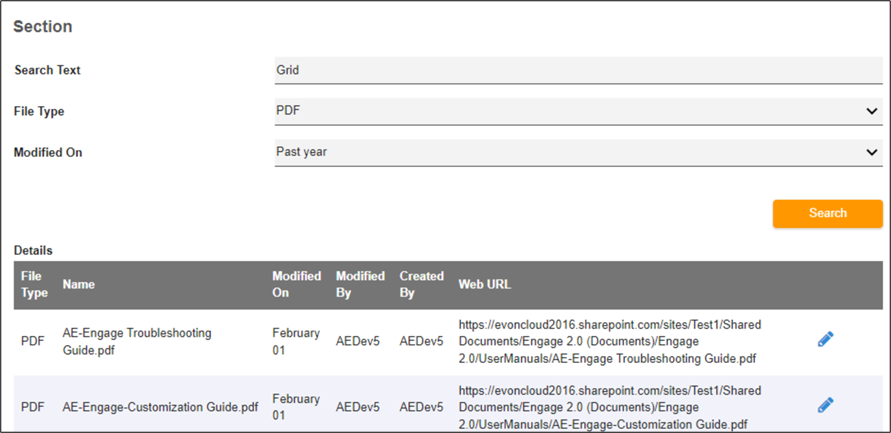 - Enter the required details in the Search Text, File Type, and Modified On fields and click Search.