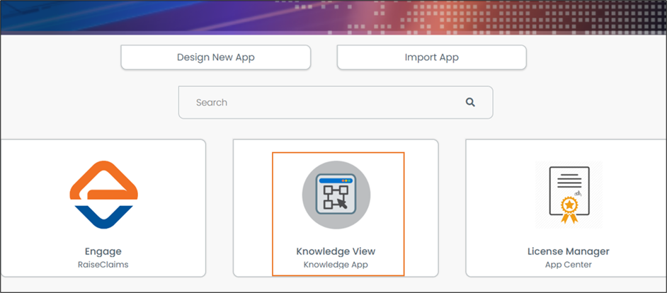 For more information, see LowCode Orchestrator. - Click the App <Knowledge View> created for accessing the Knowledge Base.