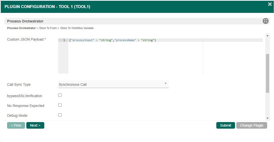 Custom JSON Payload - Provide Payload for Process Orchestrator call. Sample format is also given there.