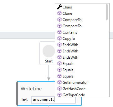 It lists the valid VB expressions once you type a the trigger character, a period (.) after the required parameter or expression. A few examples of such members are CopyTo, Insert, ToString and so on.