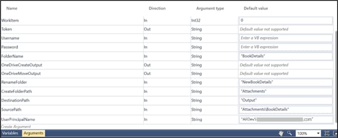 - Access token to authorize and login to OneDrive 365 application. The access token can be fetched using the Oauth activity. Here, we have fetched the access token using the Client Credential flow type, into an Out argument, Token.