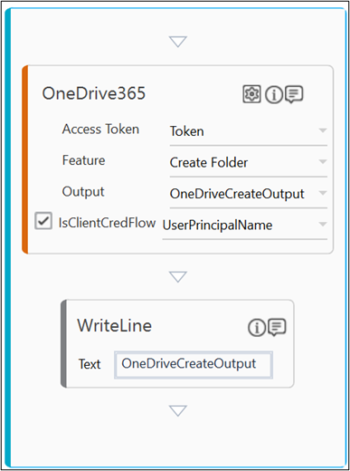 - OneDriveCreateOutput- an Out argument to store the result of the Create Folder feature.