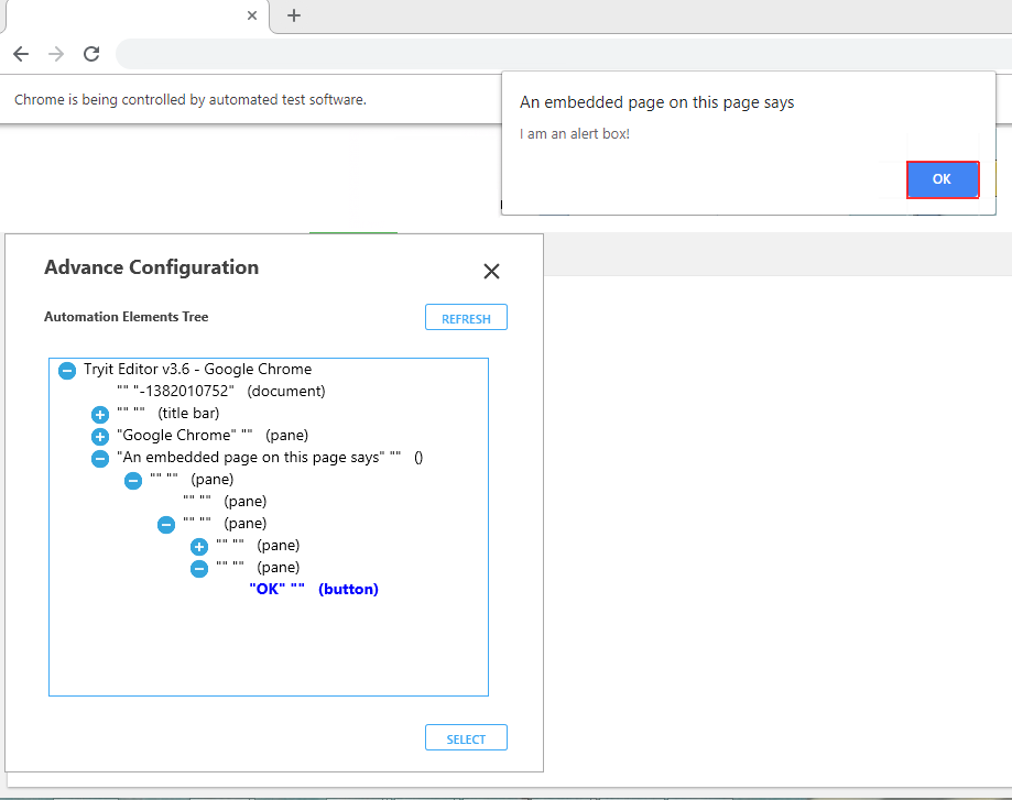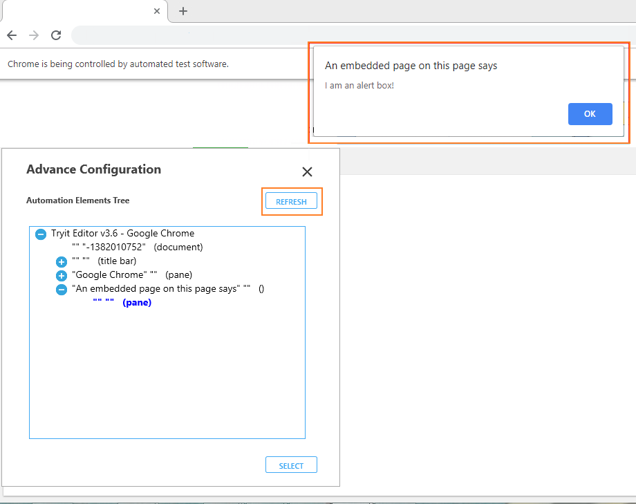 - In some cases it is observed that while configuring the JavaScript pop-up in Chrome browser, the Advance Configuration tree is not able to highlight some of the inner UI elements of the pop-up box.