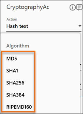 - From the Input Text dropdown list, select the In argument holding the required text you want to hash. The selected argument must be of the String type.