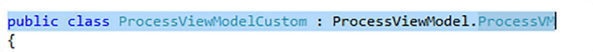 - In the constructor of DefaultProcess.xaml.cs, create the object of custom class created in step #2, instead of ProcessVM class.
