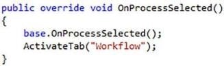 - Override the OnProcessSelected method of ProcssVM class and call the ActivateTab method as shown in the below code.