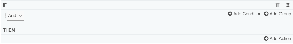 | Add Group | Adds a Group within the IF statement. Properties will be similar in Add Rule properties | |