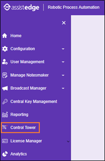 - Click Control Tower. The Control Tower page appears.