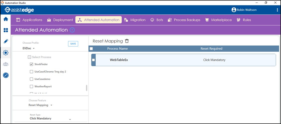 - In the Attended Automation tab, select the available profile in the Profile list.