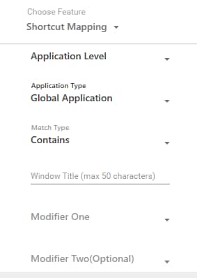 - Application Level- configures shortcut keys at application level. Automation can be triggered using application level shortcut keys only when the specific application is in focus.
