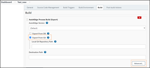 - If Export From Git is selected,