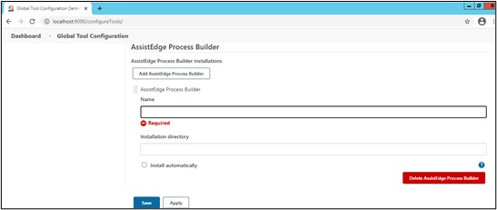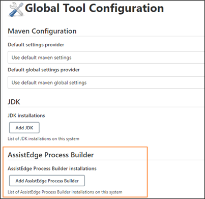 - Under the AssistEdge Process Builder section, click Add AssistEdge Process Builder.