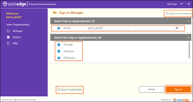 - Select Apply Common Password at the top-right if you have a single password for all the applications. You need not type the password for each application separately.