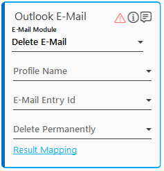 It helps you to delete an e-mail selected as per the EntryID field present in the Outlook for the given profile. You can soft delete (move the specified e-mail in the Deleted Items folder) or hard delete (permanently delete) an e-mail. Only a single e-mail can be deleted at a time.