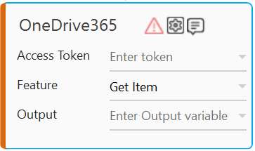 - Drag the OneDrive 365 activity and drop it below the OAuth activity inside the Application activity block. The validation error symbol disappears when you select at least one feature from the available list.