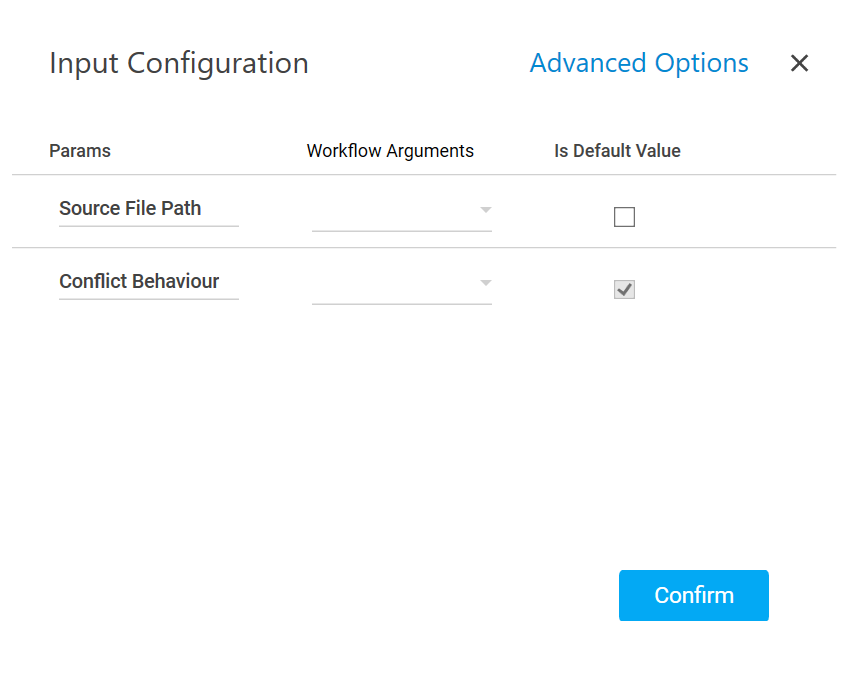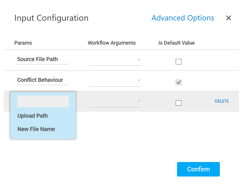 - Advanced Options: These are the optional parameters that lets you define additional details such as the upload path.