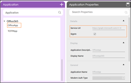 - In the Select an Application list, select the configured Office 365 application, OfficeApp.