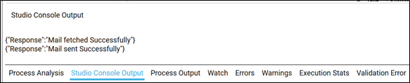 To view the Get Mail result in Automation Studio, you can add WriteLine activity. This prints the result in the Studio Console Output tab after you test run the process.