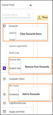You can mark the frequently used activities in Canvas Tools as favorite. This enhances the ease of access to the activities marked.