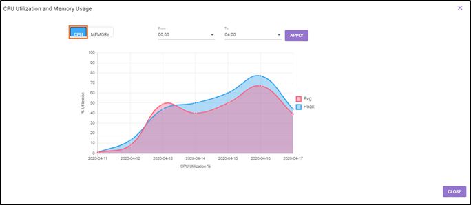 - In the From and To list, select the time for which you want to view the CPU Utilization and Memory Usage.