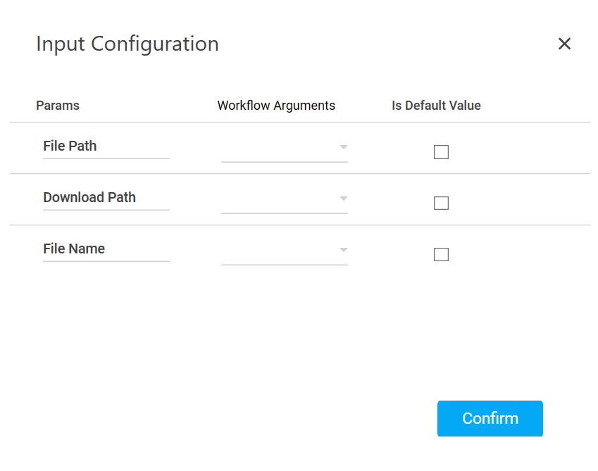 - You can select the Is Default Value checkbox to set the selected input parameter as the default value.