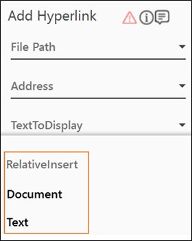 - From the RelativeInsert dropdown list, select the required value, to insert hyperlink, with respect to the document or specific text.