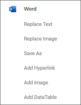 The Word tool enables you to replace text or image, save the word file in various formats, add hyperlink, image, or data table at specified positions in the document. Both .doc and .docx file types are supported.